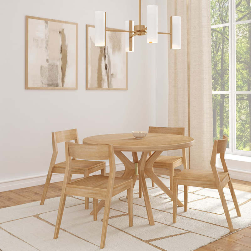 Elevate everyday meals and special gatherings with the Verso 47" Round Solid Wood Dining Table, a refined centerpiece that merges clean modern design with the warmth of real wood. Expertly constructed from knot-free solid pine wood, the table highlights the organic grain and texture of natural lumber, bringing earthy elegance and inviting character to your dining space.
