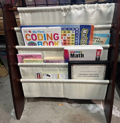 Kids Sling Book Rack – Wood & Fabric Organizer.
